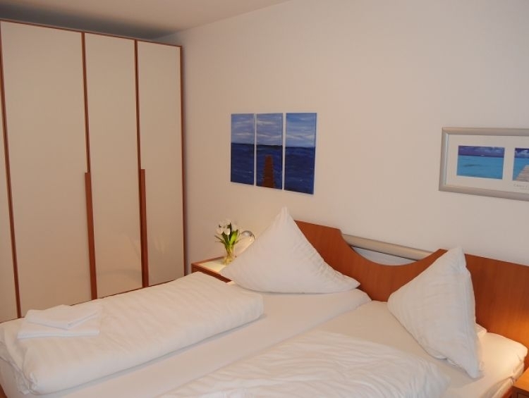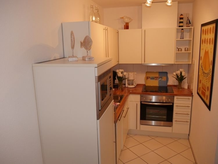 Schlafraum mit regulärem Doppelbett und Wohnraum mit integrierter Einbauküche ausgestattet mit Geschirrspüler, Mikrowelle und Backofen. Kabelfernsehen, Stereoanlage und DVD-Player sowie Bügeleisen/-brett und Wäscheständer vorhanden. Bad mit Dusche, WC und Fön. Größe der Ferienwohnung ca. 59 qm. Keine Haustiere erlaubt!
